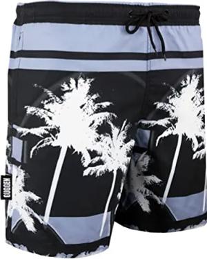 Badehose für Herren Schnelltrocknende Badeshorts 2148 mit Kordelzug Beachshorts Boardshorts Schwimmhose Männer Palmen Beach Farbe Schwarz S