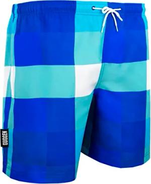 Badehose für Herren Schnelltrocknende Badeshorts 2924 mit Kordelzug Beachshorts Boardshorts Schwimmhose Männer blau kariert Farbe kariert M