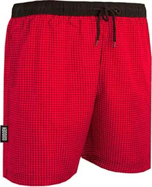 Badehose für Herren Schnelltrocknende Badeshorts Style-6 mit Kordelzug Beachshorts Boardshorts Schwimmhose Männer kariert Farbe Rot XXL