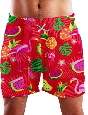 Funky Hawaii Schwimm-Hose Bade-Hose Bade-Shorts, Flamingo Melon, Rot, L