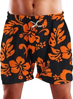 Funky Hawaii Schwimm-Hose Bade-Hose Bade-Shorts, Hibiscus, Orange, M