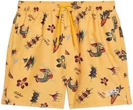 Herren 17-Zoll Badeshorts aus recyceltem Material mit Hawaii-Print Aloha Goldgelb L