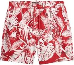 Herren 17-Zoll Badeshorts aus recyceltem Material mit Hawaii-Print Luna Dunkelrot XL