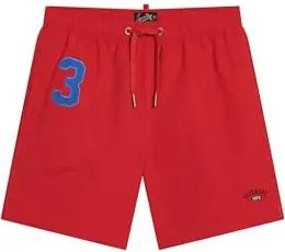Herren Badeshorts mit nautischem Logo (43 cm Länge) Dreifarbig Rot L