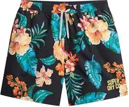 Herren 43cm lange Badeshorts mit durchgehendem Print Superdry Schwarz-Weiß XXL