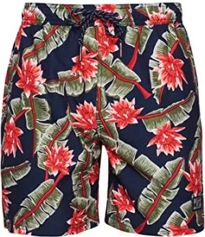 Herren 17-Zoll Badeshorts aus recyceltem Material mit Hawaii-Print Dunkel Marineblau Feuer S