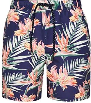 Herren 17-Zoll Badeshorts aus recyceltem Material mit Hawaii-Print Optik Paradies S