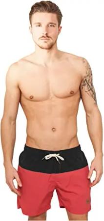 Herren Block Swim Shorts – Badeshorts mit Kordelzug & Taschen, schnelltrocknend, ideal für Strand, Pool & Urlaub,Cherry/Black,L