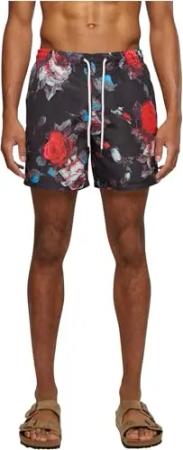 Herren Swim Shorts – Schnelltrocknende Badehose mit Innenslip und Taschen für Strand Pool Urlaub und sportliche Aktivitäten,Black Rose AOP,3XL