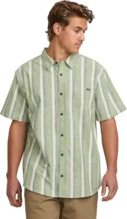 Herrenhemd, gestreift, kurzärmelig, gewebt, Ganztägig, gestreift, kurzärmelig, moos, S