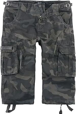 Herren Schwarze Dreiviertel Cargohose 3/4 Army Vintage Shorts mit Zwei Einschubtaschen XL