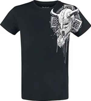 Herren schwarzes Basic T-Shirt mit Wikinger-Print 3XL
