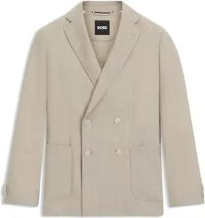 Herren H-Janson-FL-253 Regular-Fit Sakko aus gemusterter Schurwolle Hellbeige 54