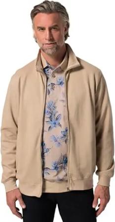 Herren große Größen Übergrößen Menswear L-8XL Sweatjacke, Rippsweat, Stehkragen Hellbeige 72+ 836241156-72+