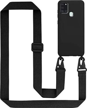 Handykette kompatibel mit Samsung Galaxy A21s Schutzhülle TPU Liquid Silikon Case Necklace mit verstellbarem Band Kordel Band mit Etui Rundumschutz Case Hülle für Galaxy A21s in Schwarz
