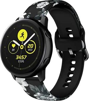 Silikon Armband 20mm kompatibel mit Samsung Galaxy Watch 42mm / S2 Classic im Print Design Blumen SCHWARZ WEIß - Ersatzarmband für Huawei Watch 2 für Nokia Steel für LG Watch Sport UVM