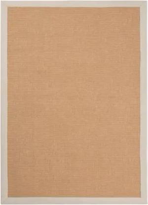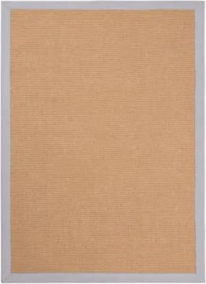 Sisalteppich Naturfarbe 140x200 cm handgewebt mit Bordüre aus Baumwolle in Taupe | Moderner Rutschfester Flachgewebeteppich Uni aus Naturfasern für Wohnzimmer, Schlafzimmer