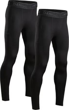 Herren-Kompressionshose, Trainingshose, Tights mit Tasche, 2er Pack (Schwarz, M)