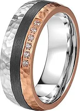 Partnerring/Freundschaftsring HAMMERSCHLAG Edelstahl-Carbon – inkl. Gratis Gravur (62 (19.7))