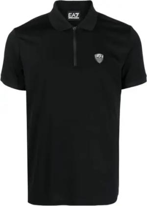EA7 Poloshirt, Baumwolle, Logo, Viertelreißverschluss, Schwarz, Schwarz, Klein