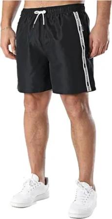 Herren Mid Boxer Badehose, schwarz/weiß, Verschiedene Größen