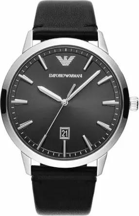Uhr für Herren , DreizeigerDatumswerk, 43mm Silbernes Edelstahlgehäuse mit Lederarmband, AR11193, Grau