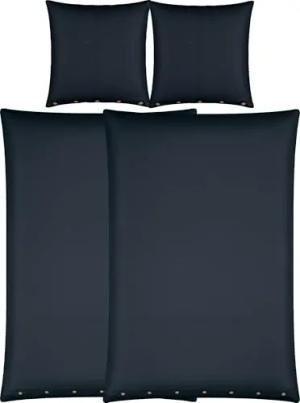 Bettwäsche-Set Renforcé Würzburg, Uni dunkelblau Größe 80x80 cm / 135x200 cm - strapazierfähig und temperaturausgleichend, mit Reißverschluss