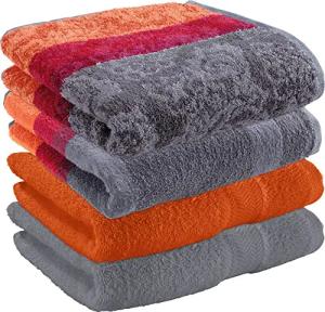 Handtuch-Set 4er-Pack Walk-Frottier orange/grau Größe 50x100 cm