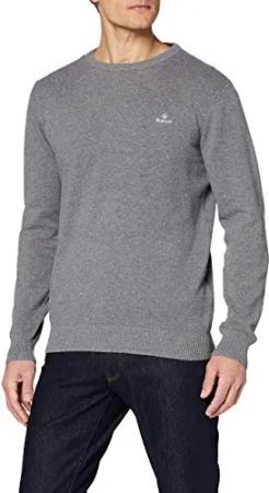 Herren Classic Cotton C-Neck Pullover, Dark Grey Melange, L EU