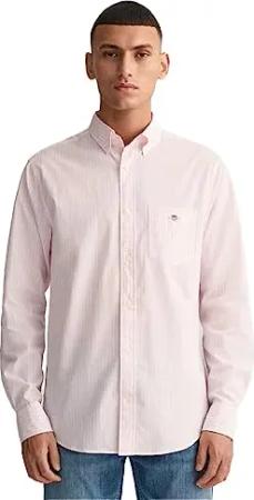 Herren REG POPLIN Stripe Shirt Klassisches Hemd, Light Pink,S