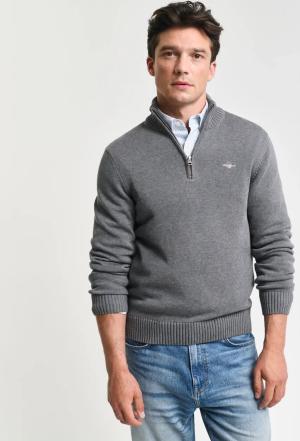Troyer "CASUAL COTTON HALF ZIP" mit grafischer Logostickerei auf der Brust