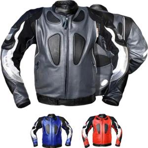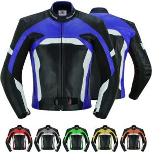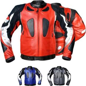 Herren Motorradjacke Motorradlederjacke Lederjacke mit Protektoren Rot Blau & Grau 52 Rot