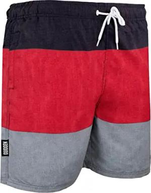 Badehose für Herren Schnelltrocknende Badeshorts 597 mit Kordelzug Beachshorts Boardshorts Schwimmhose Männer mit Muster Schwarz Rot L