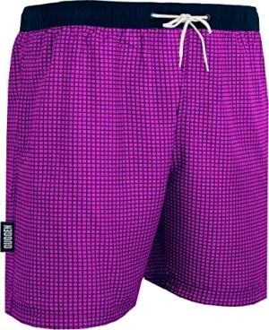 Badehose für Herren Schnelltrocknende Badeshorts Style-6 mit Kordelzug Beachshorts Boardshorts Schwimmhose Männer kariert Farbe Lila XL