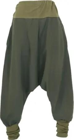 GURU SHOP Afghani Hose, Unisex Pluderhose, Goa Hose Aladinhose - Olivegrün, Herren, Baumwolle, Size:L