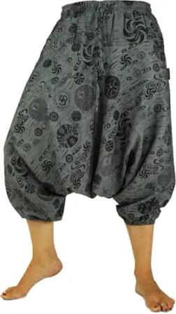 GURU SHOP Aladinhose Pluderhose, Bedruckte Shorts 7/8 Länge - Grau, Damen, Size:S/M