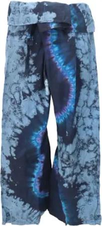 GURU SHOP Batik Thai Fischerhose aus Baumwolle, Wickelhose, Yogahose - Dunkelblau, Herren/Damen