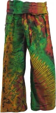 GURU SHOP Batik Thai Fischerhose aus Baumwolle, Wickelhose, Yogahose - Grün/bunt, Herren/Damen