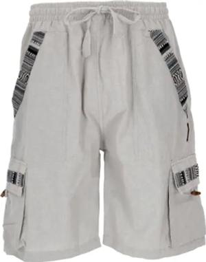 GURU SHOP Ethno Yogashorts im Goastyle - Hellgrau, Herren, Size:L