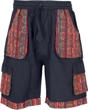 GURU SHOP Ethno Yogashorts im Goastyle - Schwarz/rot, Herren, Size:M