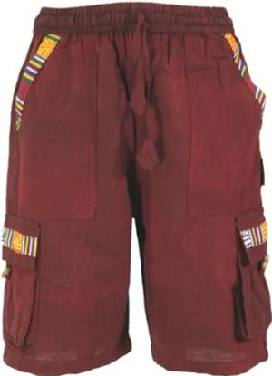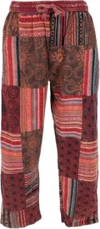 GURU SHOP Ethno Yogashorts, Patchwork Shorts - Weinrot, Herren, Size:L
