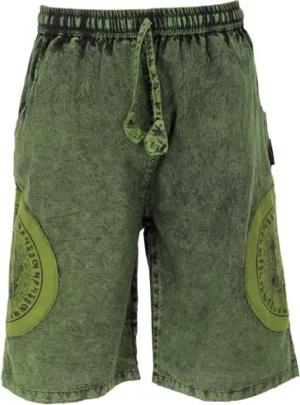 GURU SHOP Ethno Yogashorts, Stonwasch Patchwork Shorts mit Thanka Print - Grün, Herren, Size:S