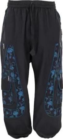 GURU SHOP Goahose, Herren Yoga Hose, Bequeme Freizeithose mit Pilzdruck - Schwarz/Petrol, Size:M