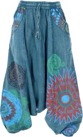 GURU SHOP Haremshose, Stonewash Pluderhose, Pumphose, Aladinhose - Petrol/bunt, Damen, Size:S/M