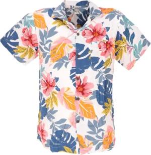 GURU SHOP Hawaihemd, Hippiehemd Kurzarm, Herrenhemd mit Blumendruck - Weiß, Size:S