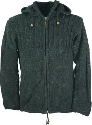 GURU SHOP Kuschelige Gefütterte Strickjacke, Mellierte Wolljacke Nepal Jacke Anthrazit - Modell 1, Herren, Size:XXL