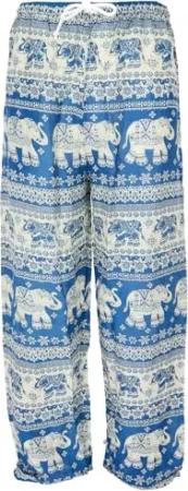 GURU SHOP Leichte Yoga Hose, Tai Chi Hose, Sommerhose mit Elefantendruck - Türkisblau, Herren, Size:L