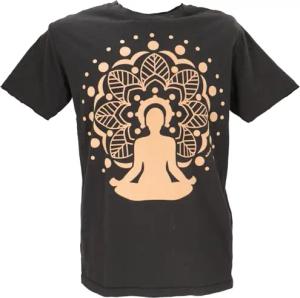 GURU SHOP Mirror Herren T-Shirt, Yoga Shirt - Meditation Buddha/schwarz, Size:L