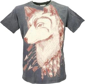 GURU SHOP Mirror Herren T-Shirt, Yoga Shirt - Wolf/Taubengrau, Size:M