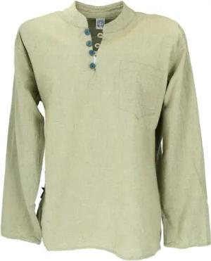 GURU SHOP Nepal Ethno Yogahemd mit Kokosknöpfen, Kurta-Hemd, Freizeithemd mit Stehkragen - Hellgrün, Herren, Size:L